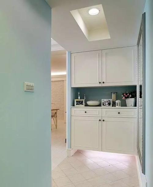 毋庸置疑,玄关最基本的功能就是平时脱衣挂帽换鞋的地方,工作中忙忙碌碌了一天,脱去鞋子,换上舒适的居家服,褪去满身疲惫,回家的温暖从这一道小小的玄关开始。